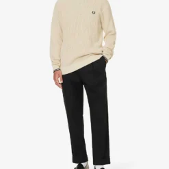 Fred Perry Waffle-knit Brand-embroidered Regular-fit Cotton-knit Jumper