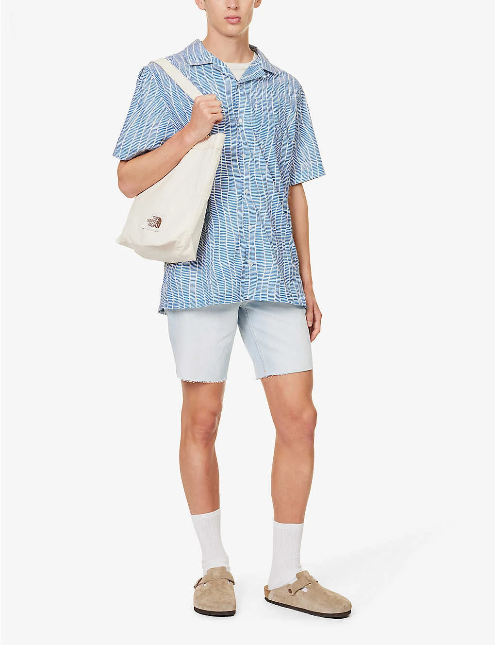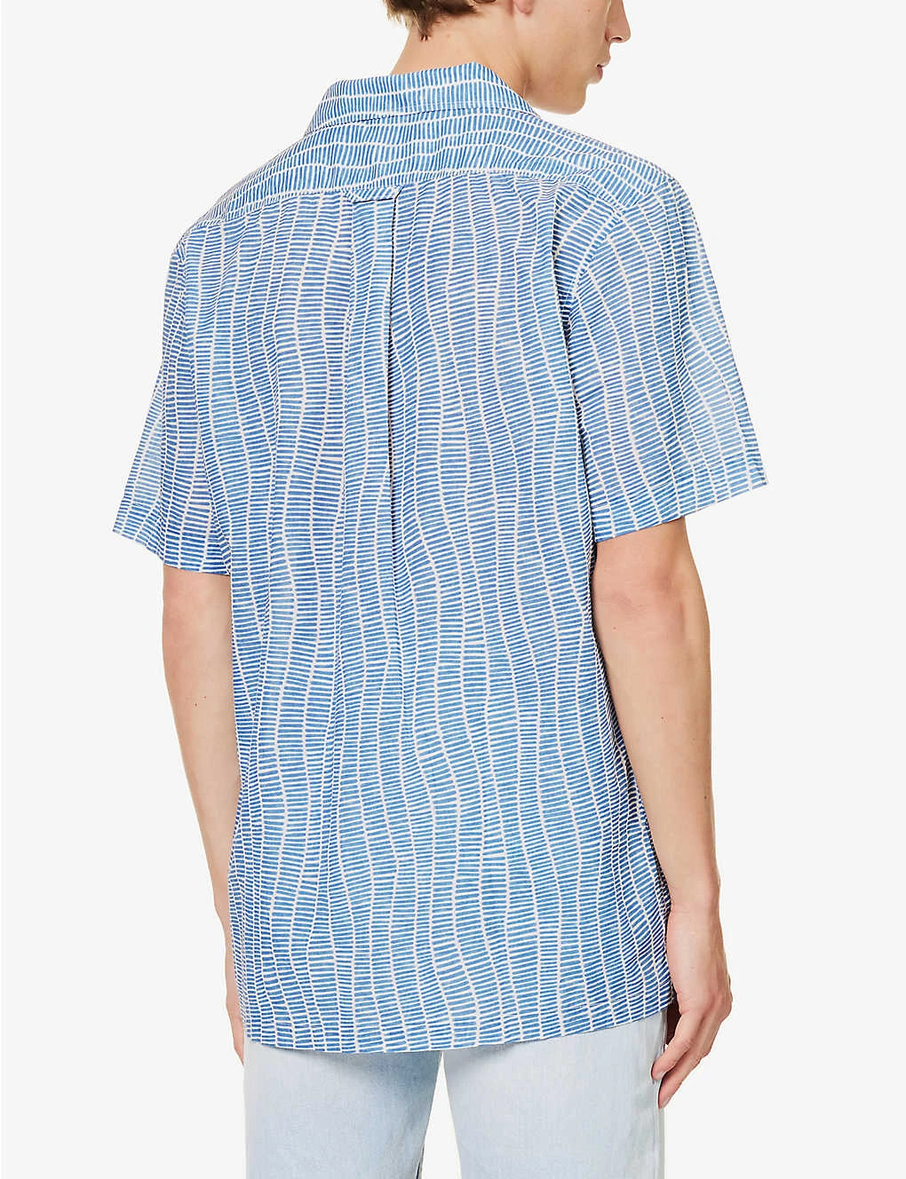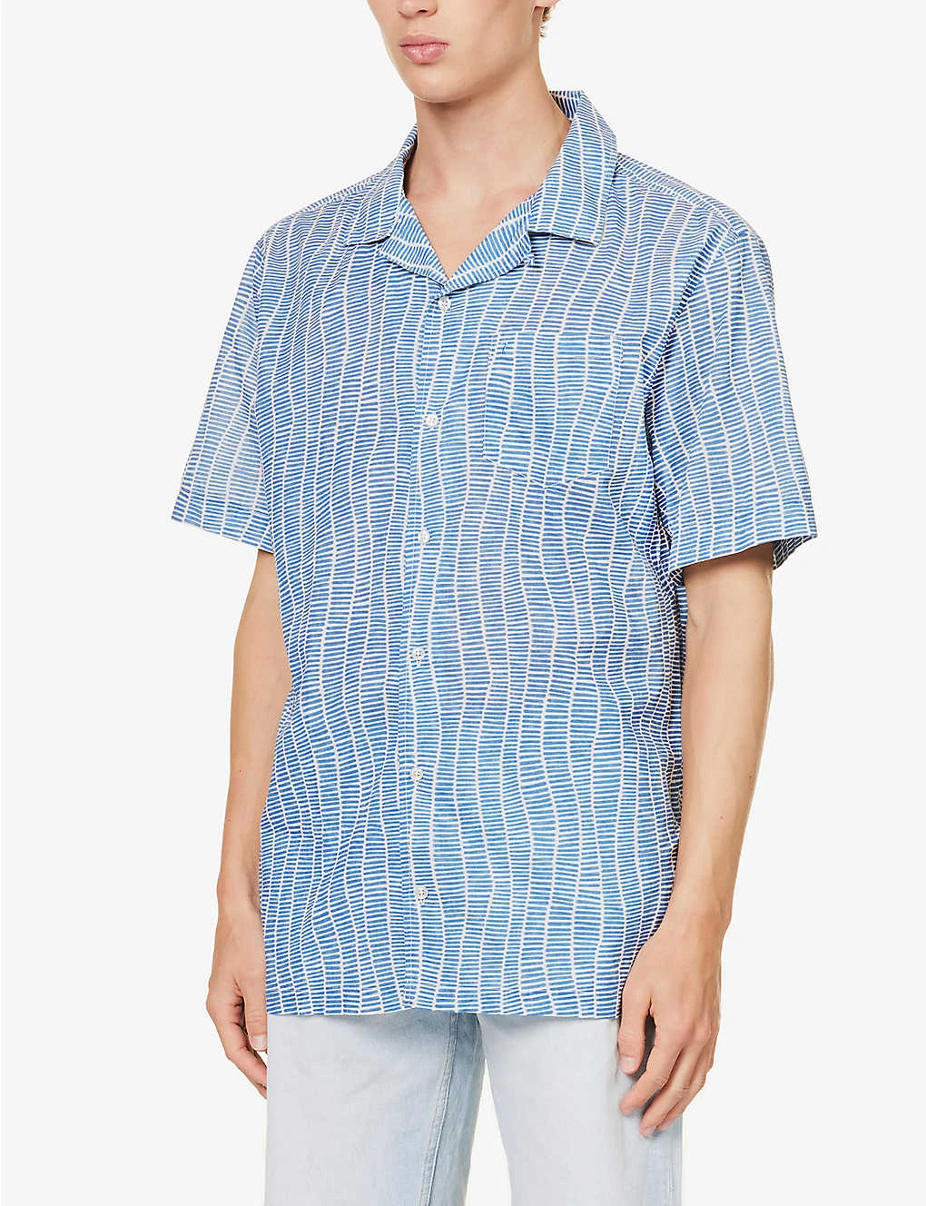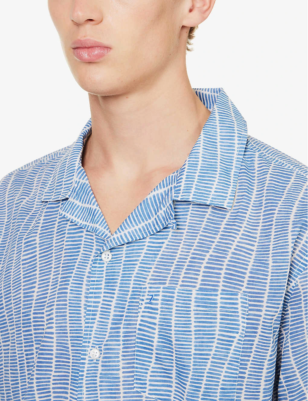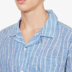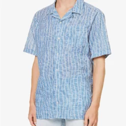 - Regular fit, short sleeves, patch pocket at chest, brand patch at side, box pleat at back, branded pearlescent buttons, all-over graphic pattern, split hem at sides