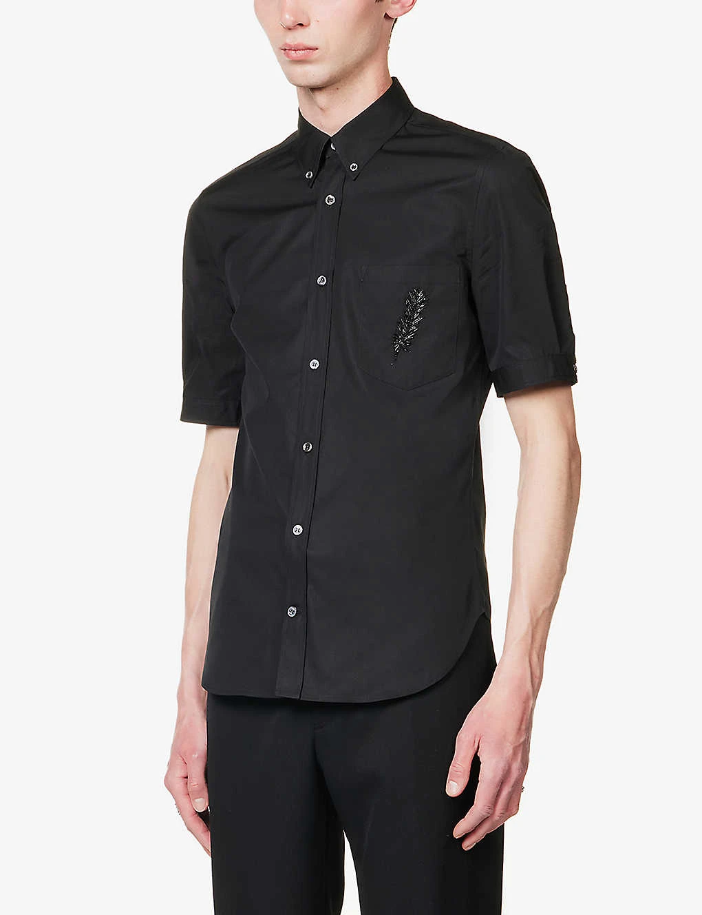 Alexander McQueen Bead-embellished Slim-fit Cotton-poplin Shirt