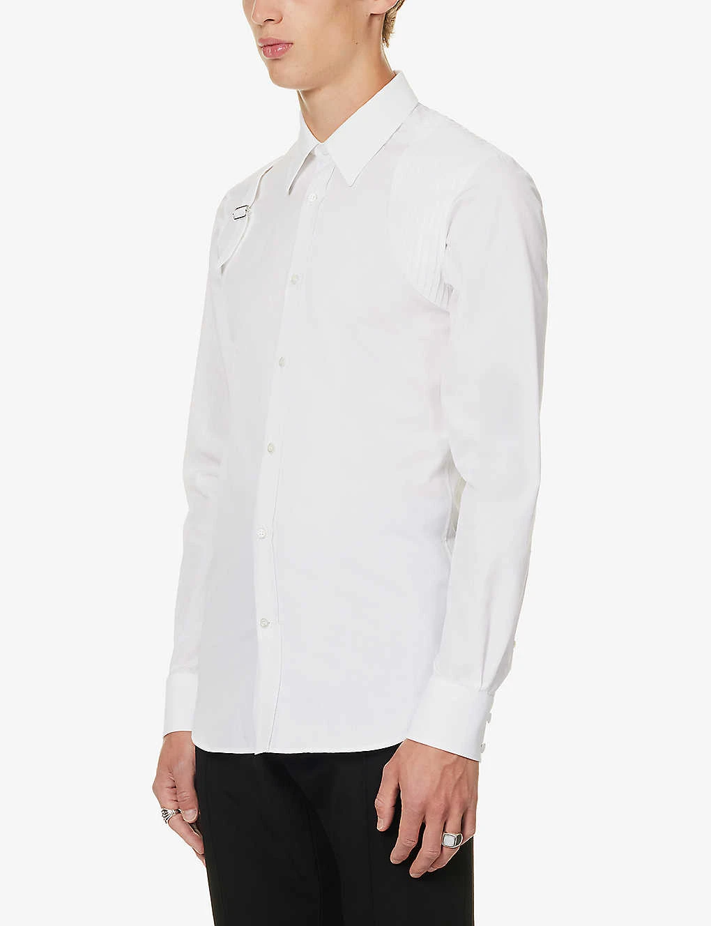 Be the first to review “Alexander McQueen Harness Pleated-panel Slim-fit Cotton-poplin Shirt” Cancel reply