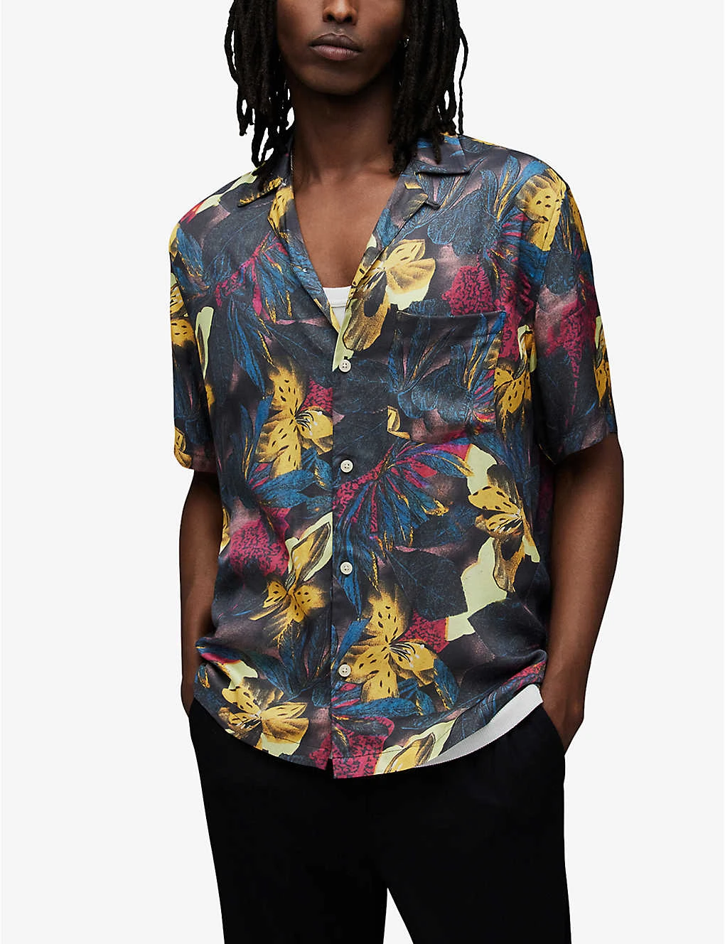 AllSaints Goldberg Floral-print Camp-collar Relaxed-fit Recycled-viscose Shirt