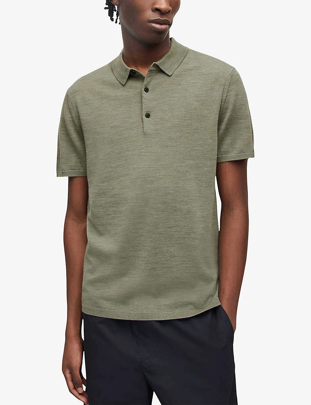 AllSaints Mode Ramskull-embroidered Slim-fit Wool Polo Shirt