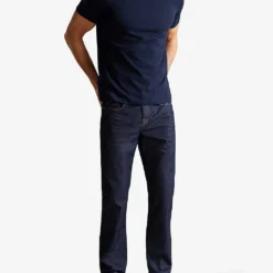 - Regular fit, crewneck, ribbed trim at neck, short sleeves, brand print at chest and back, faded wash