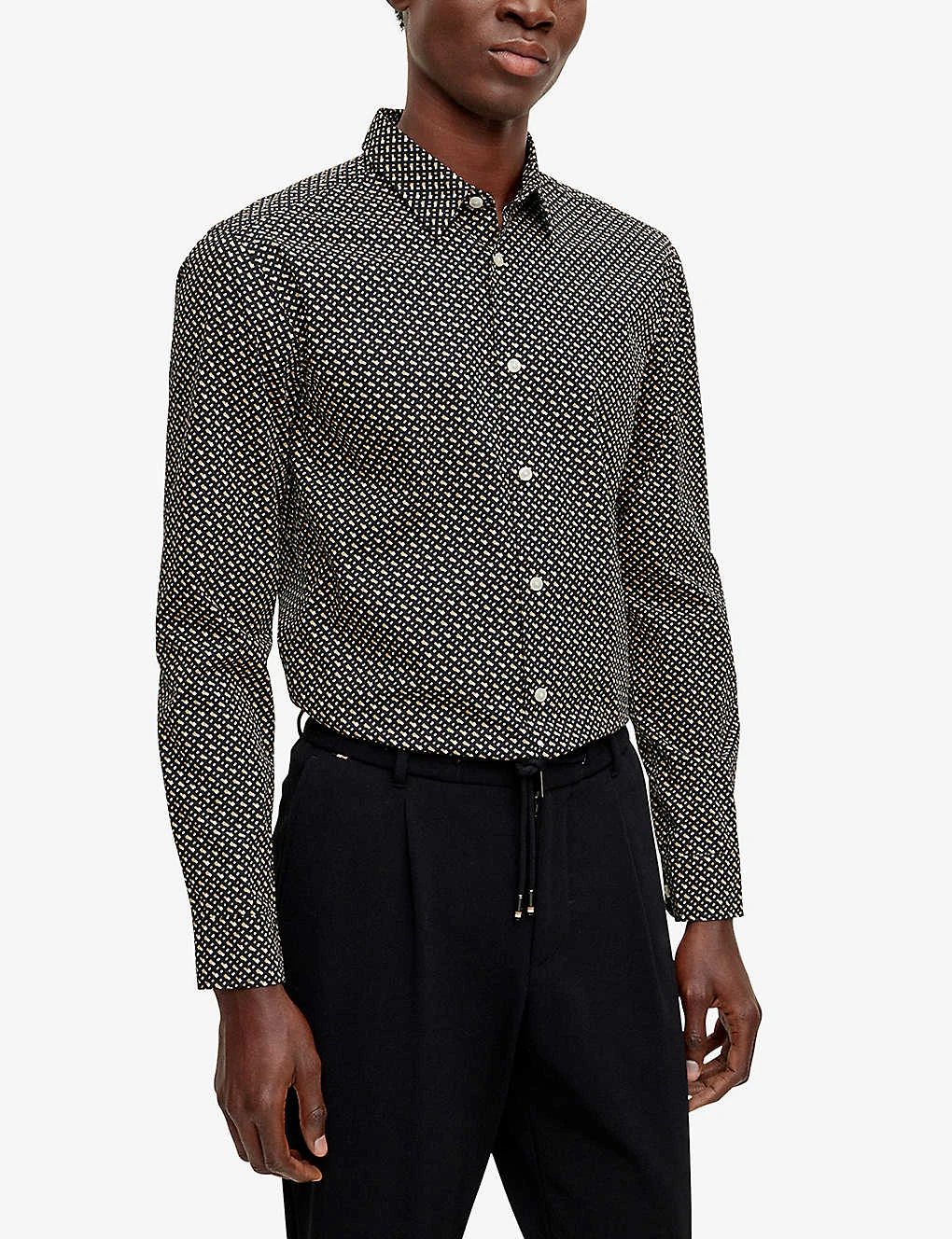 - BOSS Business Leisure pattern-embellished slim-fit cotton shirt