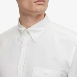 - Button-down collar, button-fastened round cuffs, slim fit, long sleeves, button-fastened patch pocket at chest, curved hem