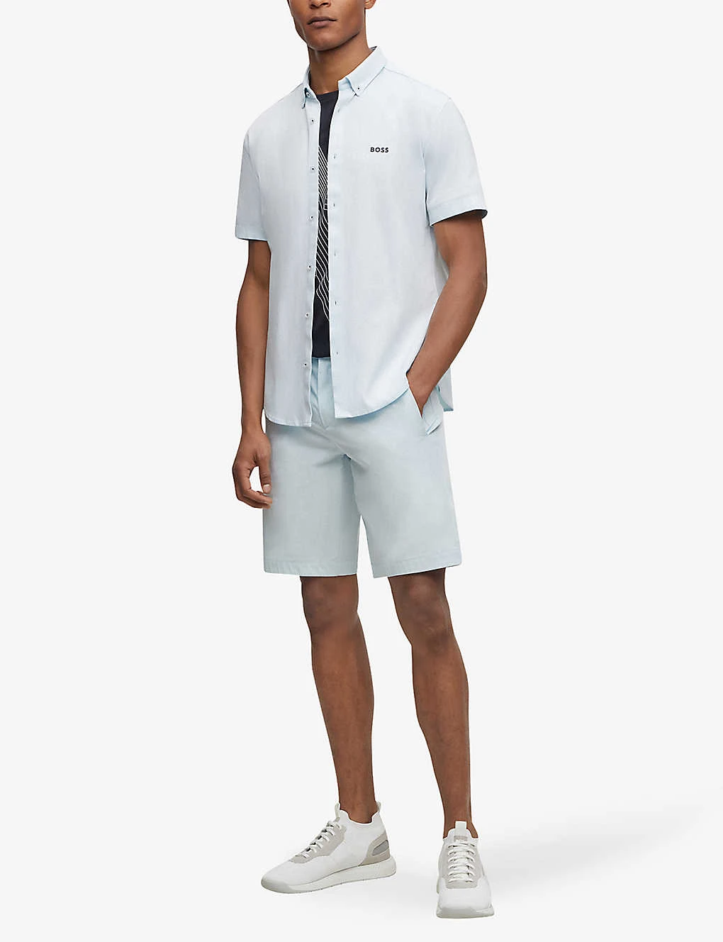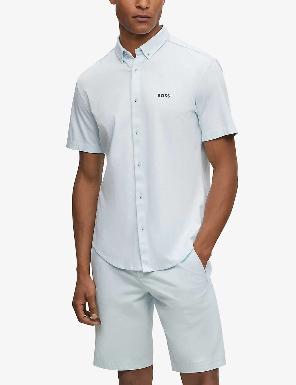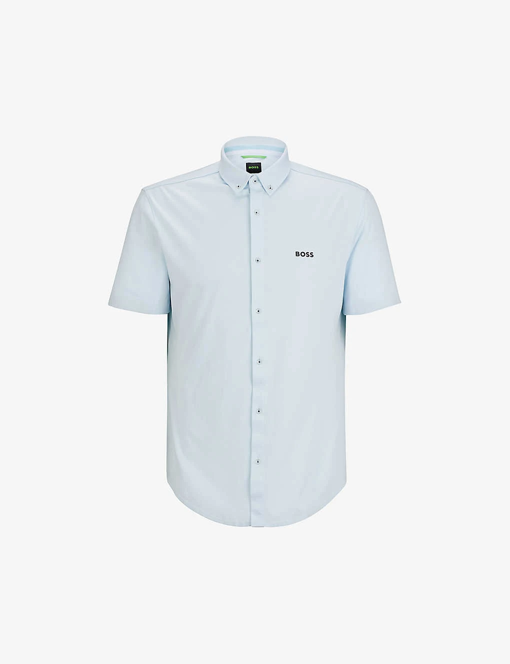 - Button-down collar, regular fit, short sleeves, logo print at chest, curved hem