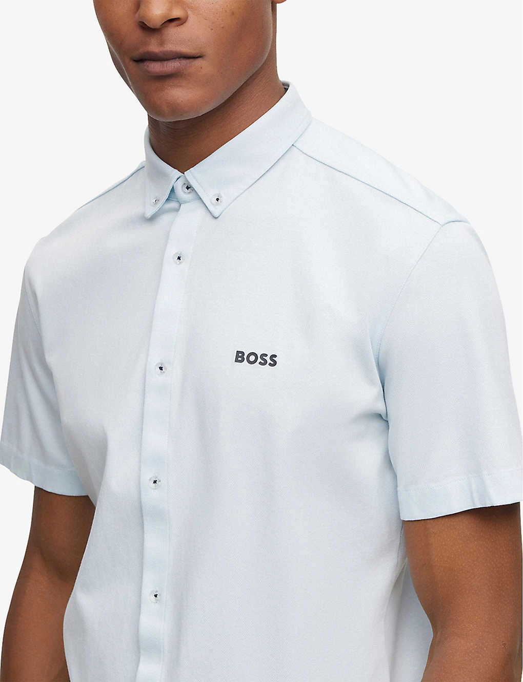 Boss Logo-print Button-down Collar Regular-fit Cotton-jersey Piqué Shirt