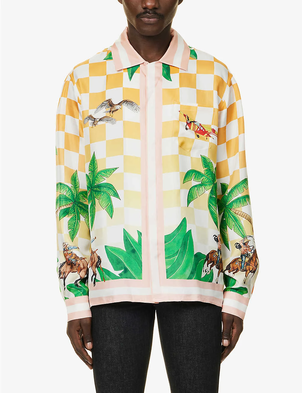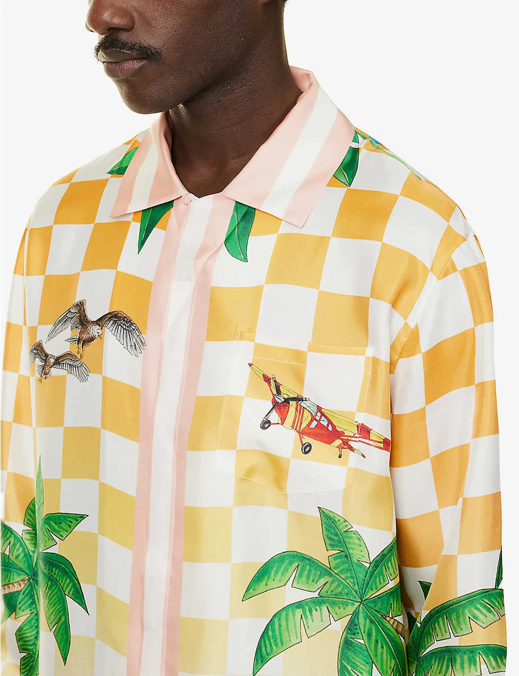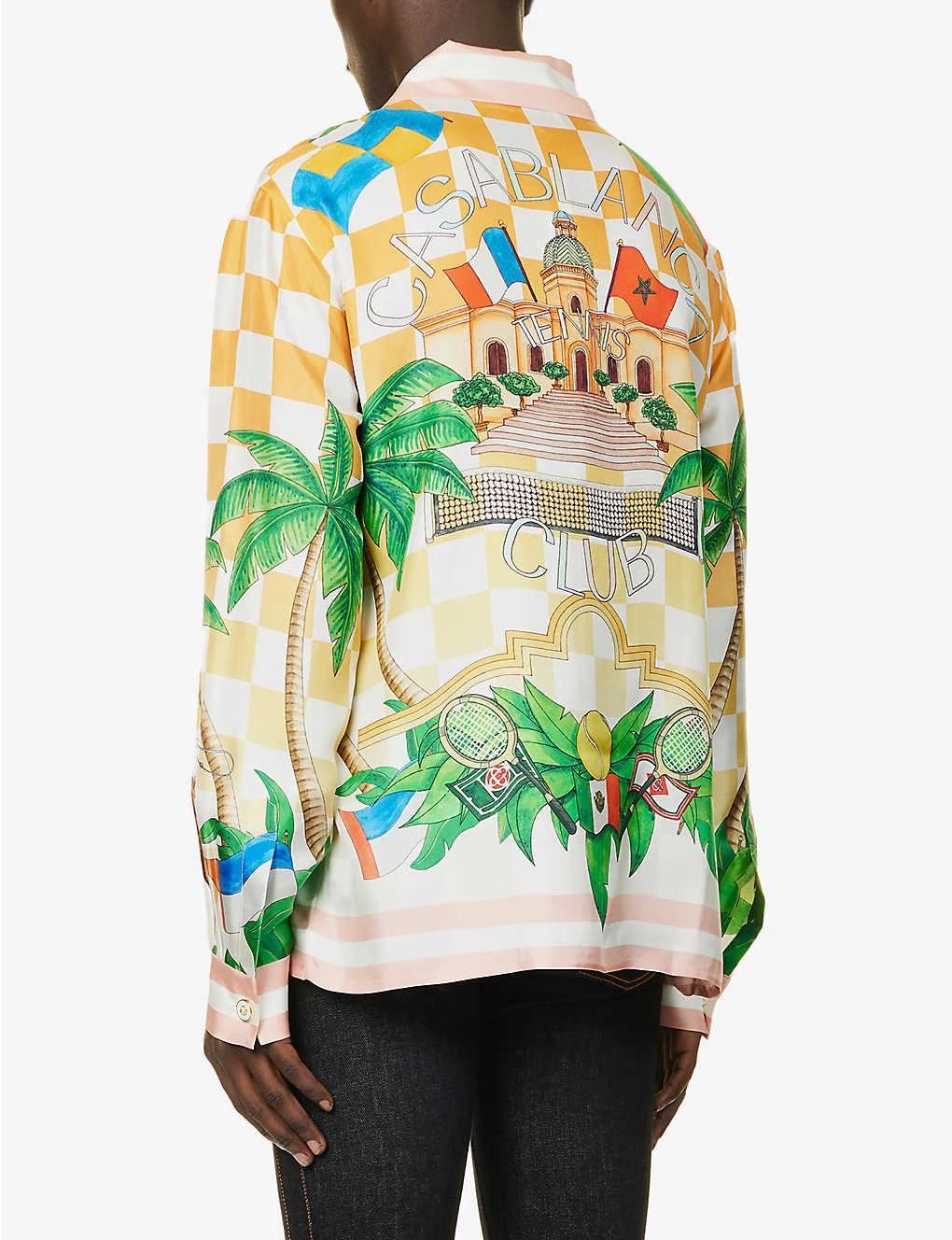 Casablanca Tennis Club Graphic-pattern Relaxed-fit Silk Shirt