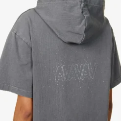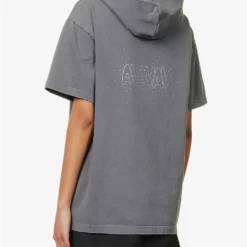 - Relaxed fit, hood, dropped shoulders, short sleeves, rhinestone pattern at front and back