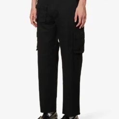 - Regular fit, mid-rise, straight leg, belt loops, two slip pockets at sides, four flap pockets at front, two flap pockets at back, embroidered branding at back, panelled construction, partially lined