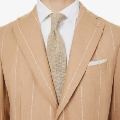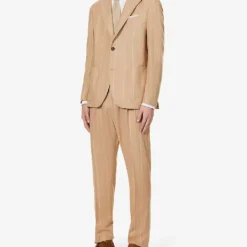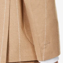 - Regular fit, notched lapels, long sleeves, buttoned cuffs, welt pocket at chest, darts at front, two patch pockets at front, twin vents at back, all-over striped pattern