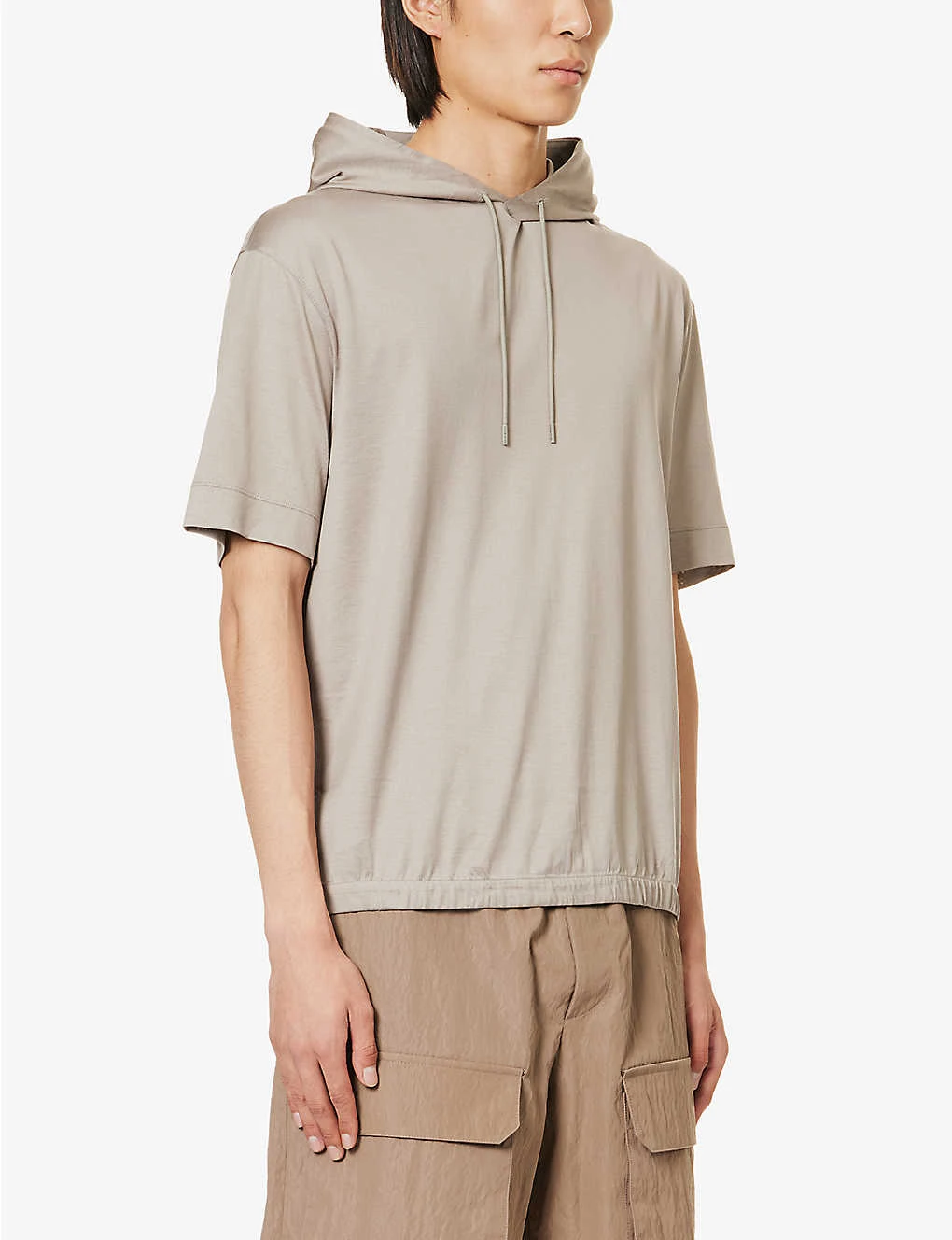 Emporio Armani Brand-embroidered Short-sleeved Jersey Hoody
