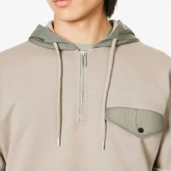 - Relaxed fit, contrast drawstring hood, dropped shoulders, long sleeves, contrast flap pocket at chest, contrast yoke panel, ribbed trims