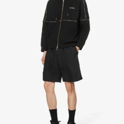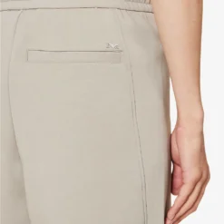 - Regular fit, mid-rise, tapered leg, elasticated drawstring waistband, two zipped pockets at front, brand plaque at back, two welt pockets at back, panelled construction, partially lined