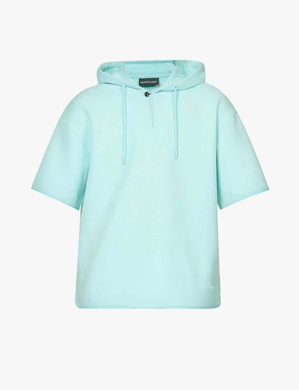 Emporio Armani Logo-embroidered Short-sleeved Stretch-cotton Blend Hoody