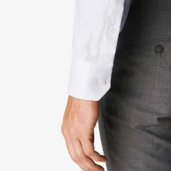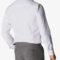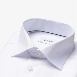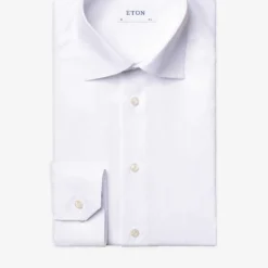 Eton cotton-twill shirt Exposed button fastenings at front Spread collar Single cuffs Contemporary-fit, long sleeves, buttoned cuffs, pearlescent buttons, curved hem 100% cotton Machine wash Collar size 15.5: Length 29″”, chest 40″” Model is 6ft and wears a collar size 15.5