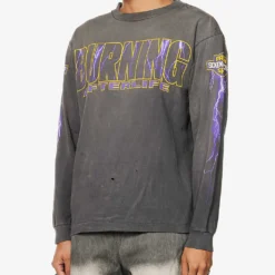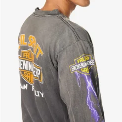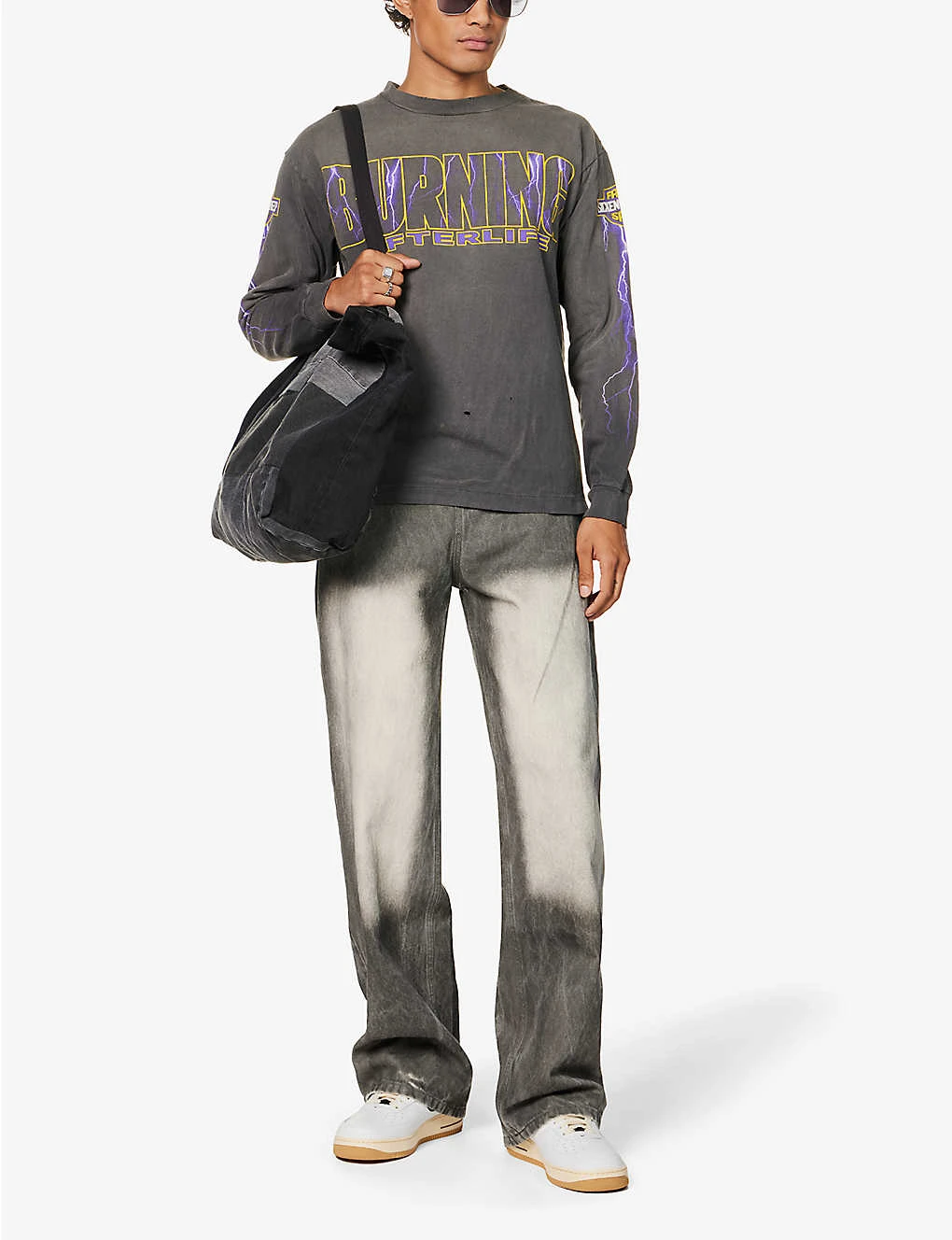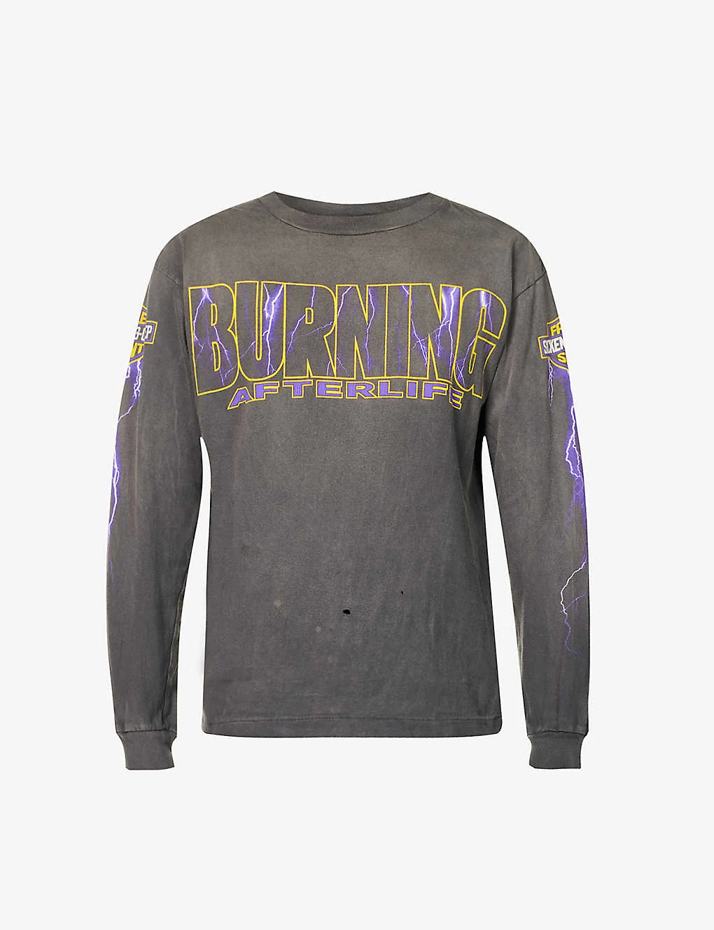 - Regular fit, crewneck, long sleeves, all-over brand prints, distressed finish, ribbed trims