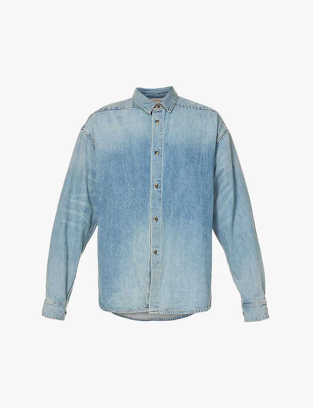 Fear Of God Brand-patch Contrast-stitch Regular-fit Denim Shirt