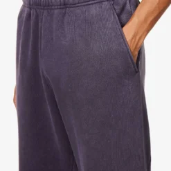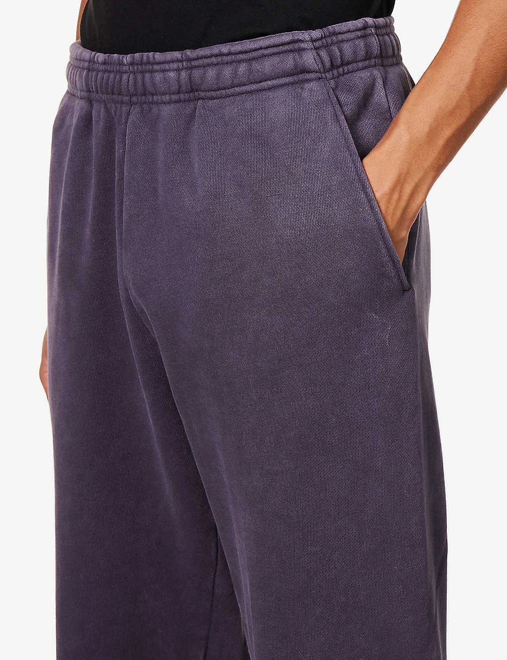 - Relaxed fit, mid-rise, tapered leg, drawstring waistband, two slip pockets at front, all-over faded wash, patch pocket at back, elasticated hem