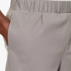 - Regular fit, mid-rise, tapered leg, elasticated drawstring waistband, two slip pockets at sides, darts at back, two welt pockets at back, partially lined