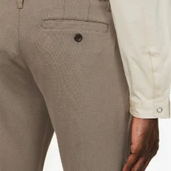 - Mid rise, straight leg, belt loops, two slip pockets at sides, pressed centre creases at front and back, darts at back, two buttoned welt pockets at back, partially lined
