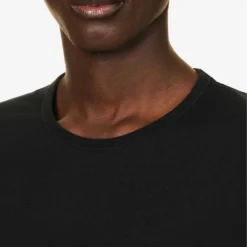 - Relaxed fit, ribbed crew neck, short sleeves, brand patch at front, straight hem