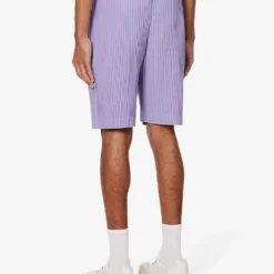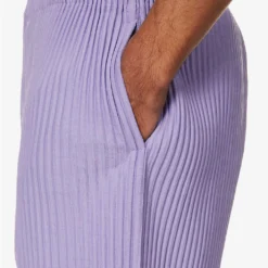 - Regular fit, mid-rise, dropped crotch, elasticated drawstring waistband, two slip pockets at sides, concealed button-fly at front, all-over pleated pattern, partially lined