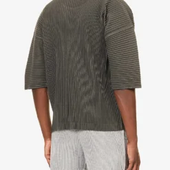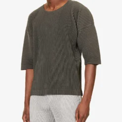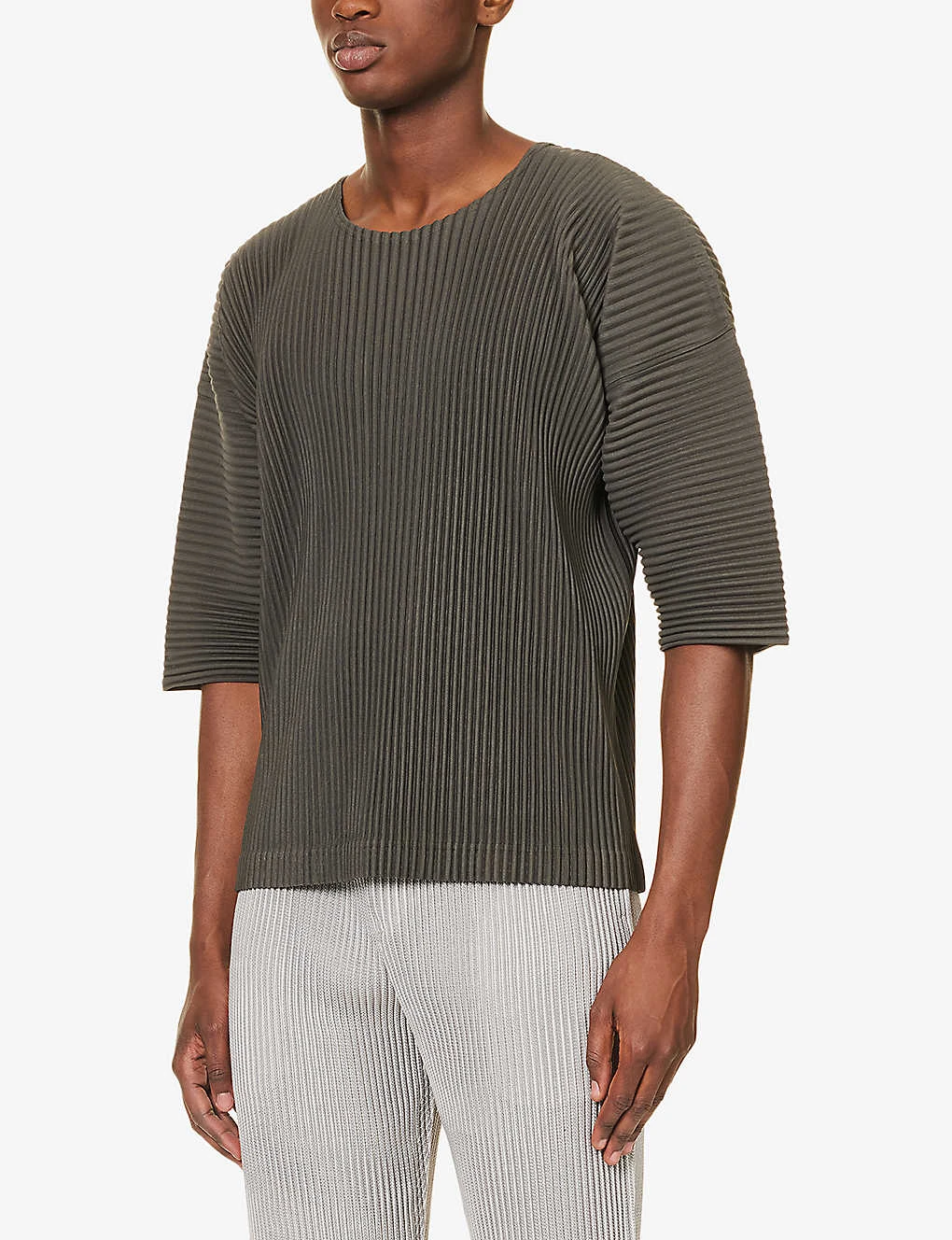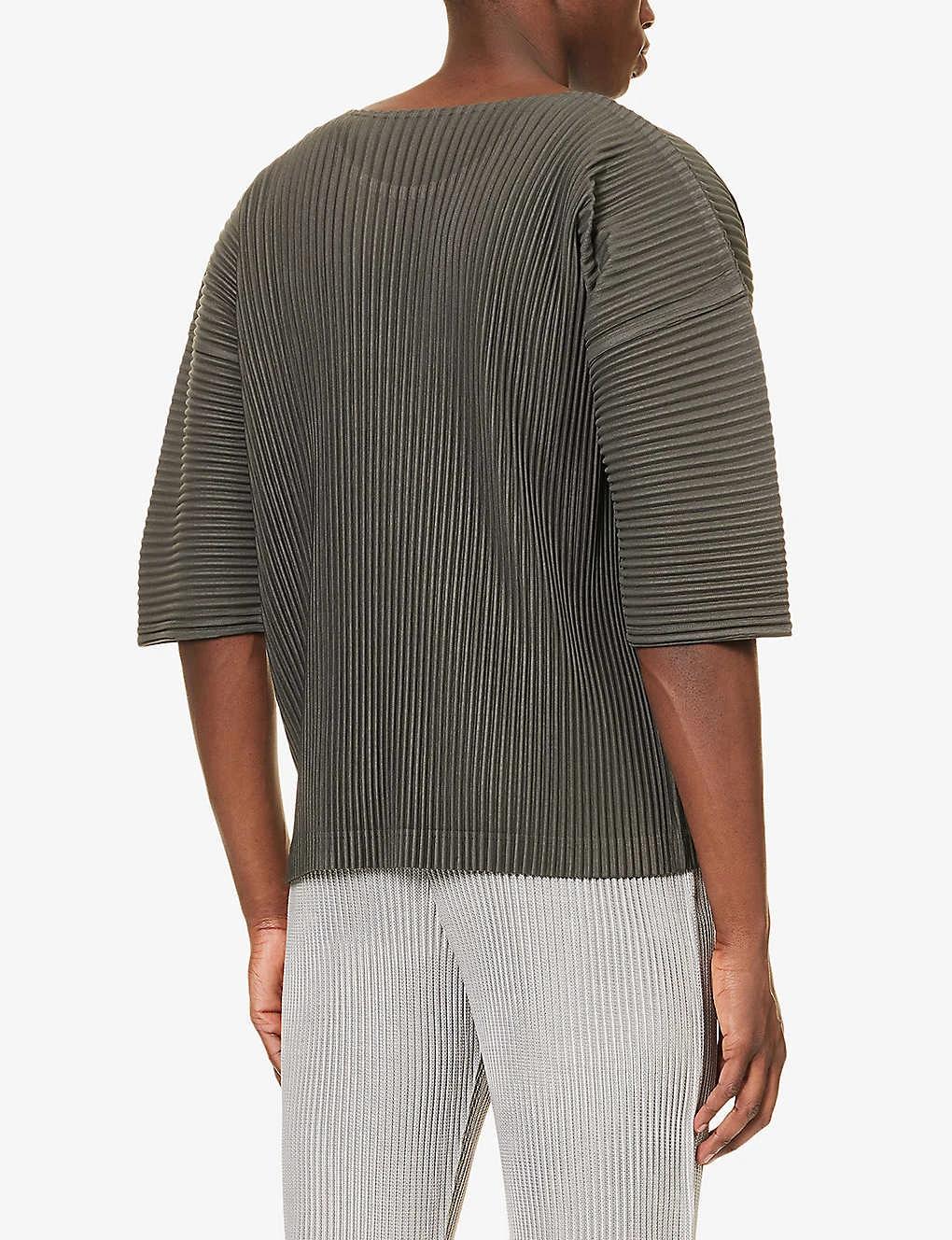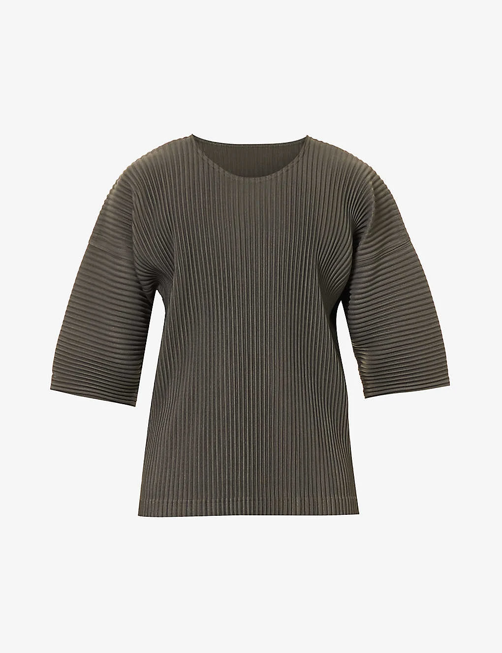 - Relaxed fit, round neckline, dropped shoulders, short sleeves, all-over pleated design