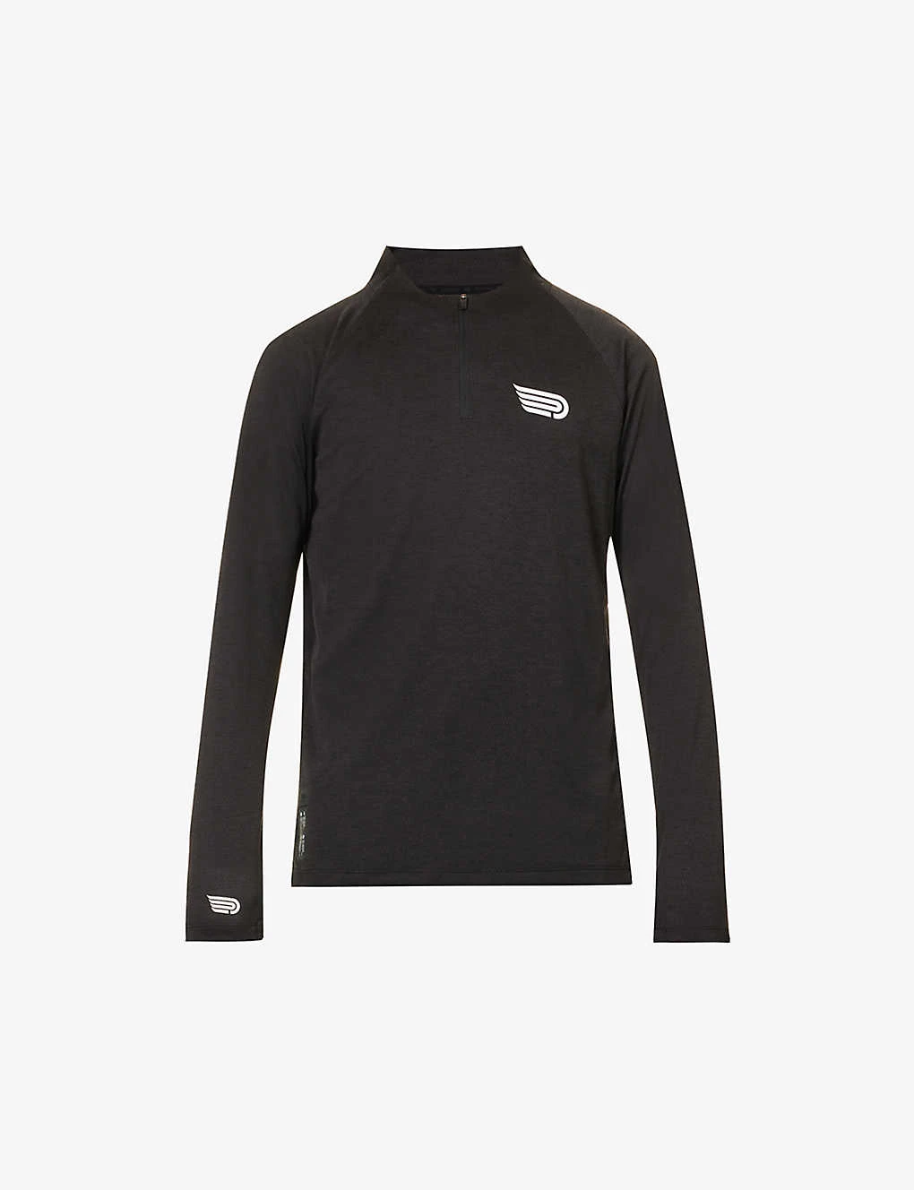 Pressio Core Brand-print Quarter-zip Fitted Recycled-polyester Top