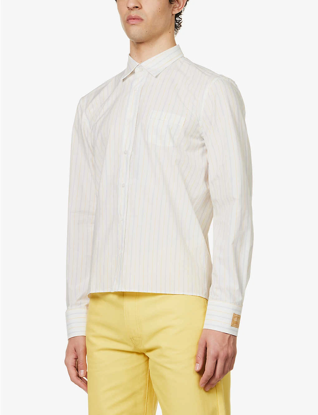 - Regular fit, collar, long sleeves, buttoned sleeve hems, brand embroidered tab at sleeve, patch pocket at chest, all-over stripe pattern, branded pearlescent buttons, straight hem