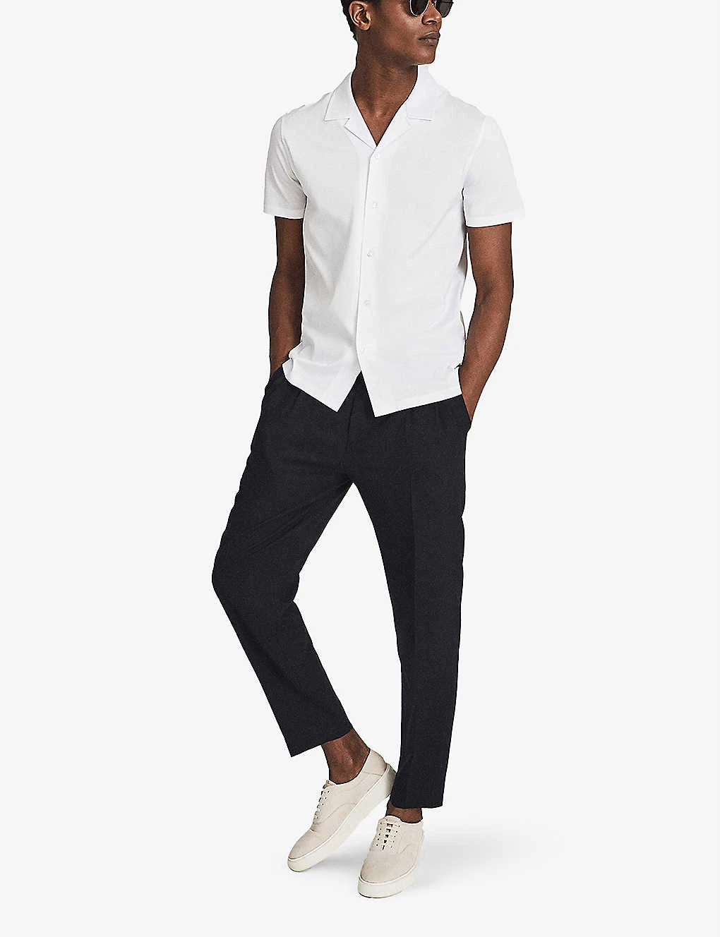 - Regular-fit, Cuban collar, short sleeves, straight hem