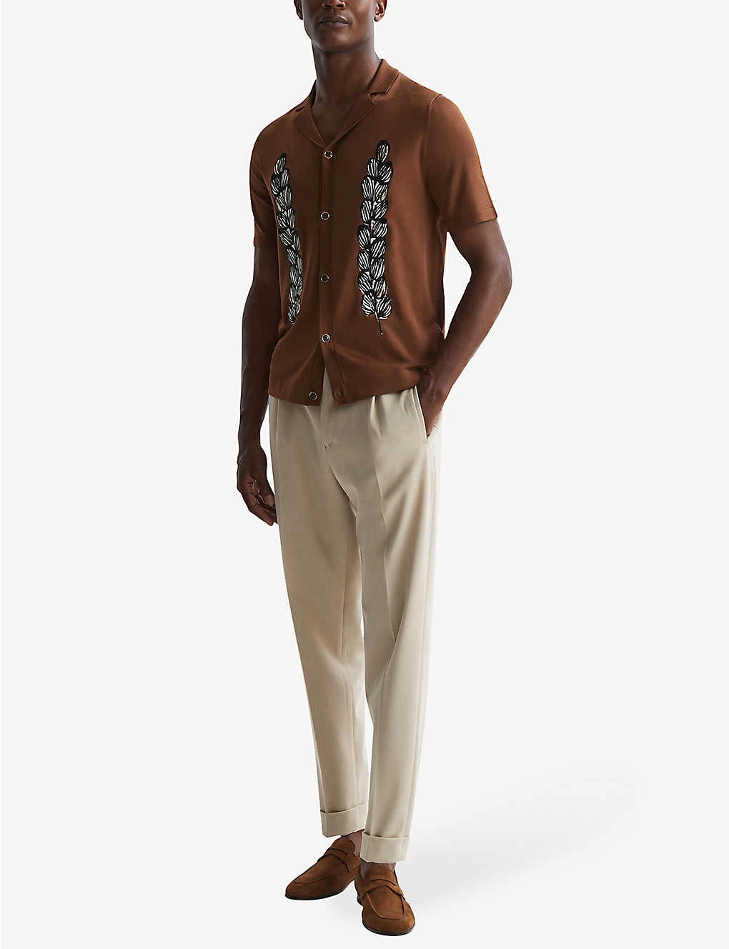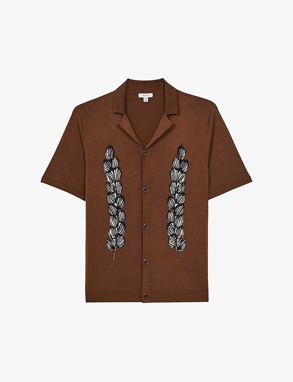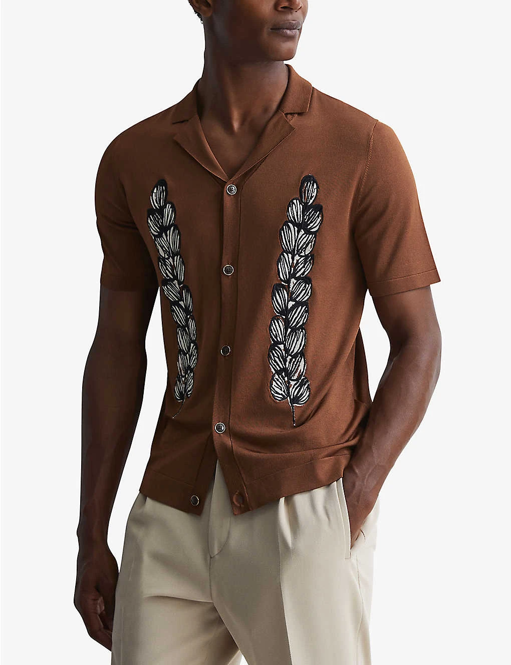Reiss Scrip Embroidered Regular-fit Stretch-woven Shirt