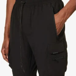 - Regular fit, mid-rise, tapered leg, elasticated drawstring waistband, two zipped pockets at front, branded hardware, two flap pockets and zipped pockets at sides, flap pocket at back, all-over panelling, toggle hems