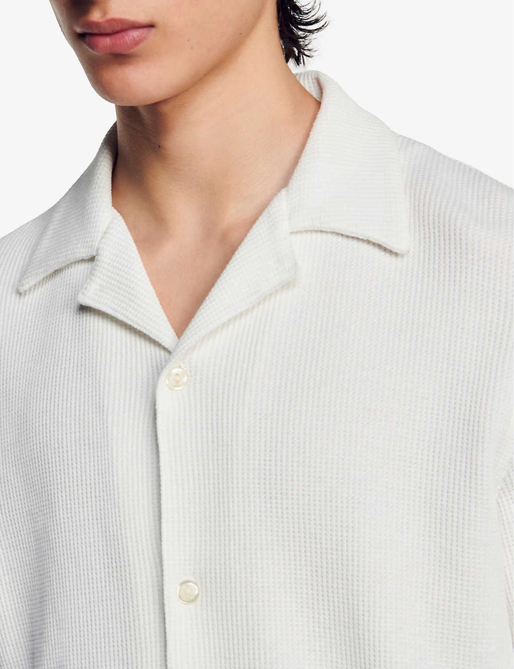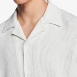 - Relaxed fit, spread collar, long sleeves, button cuffs, all-over waffle texture, all-over tonal stitching