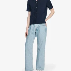 - Exposed button and zip-fly fastening at front