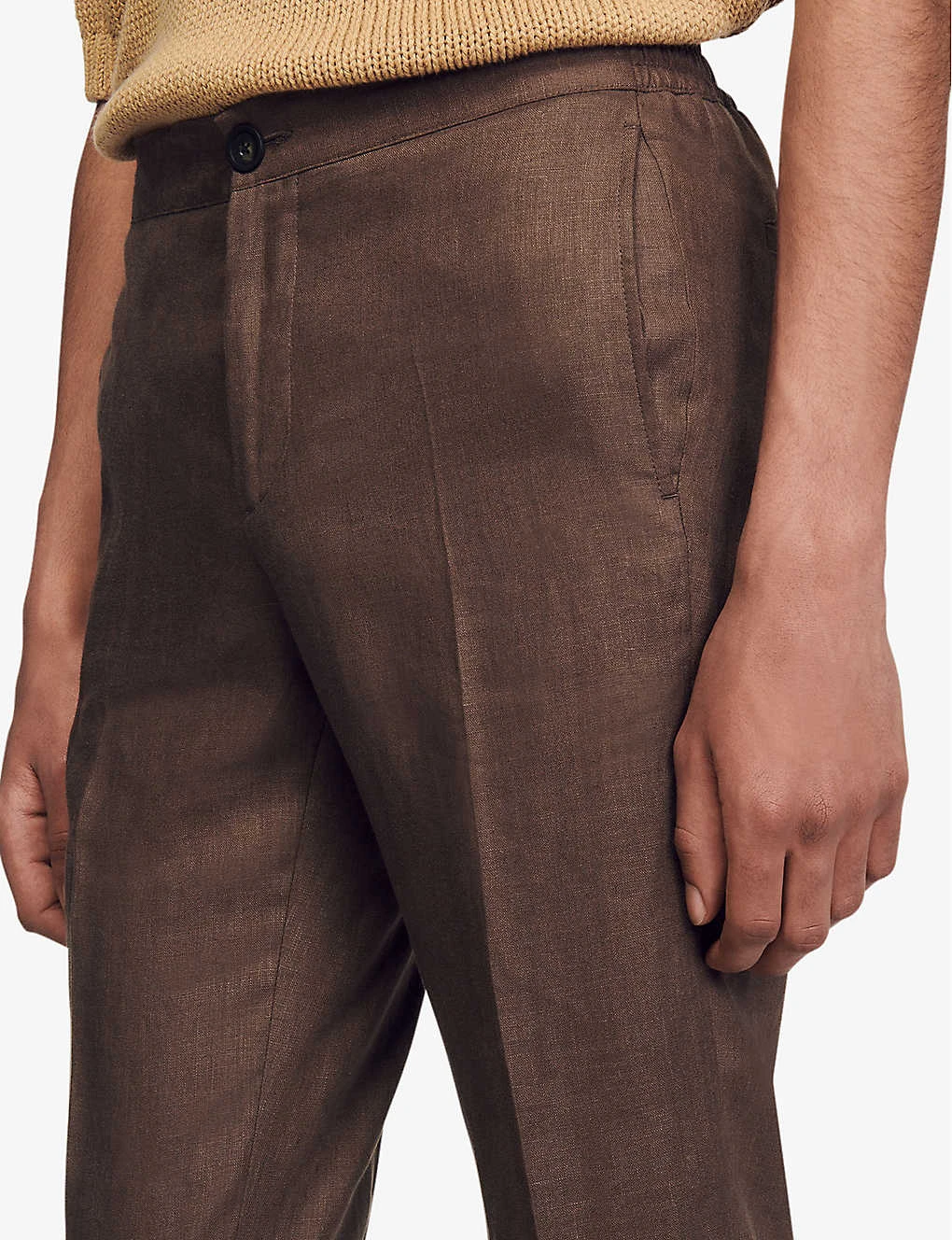 Sandro Elasticated-waist Tapered-leg Mid-rise Linen Trousers