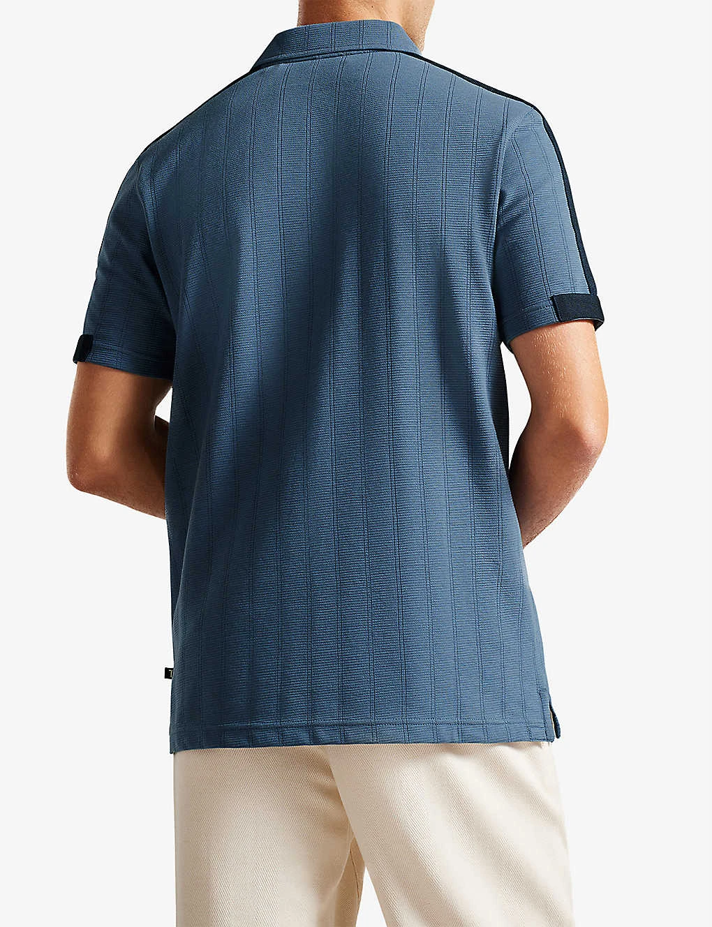 - Regular fit, collar, short sleeves, all-over ribbed design, contrasting panels to the sleeves
