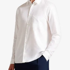 - Regular fit, long sleeves, classic collar, chest patch pockets, buttoned cuffs, curved back hem