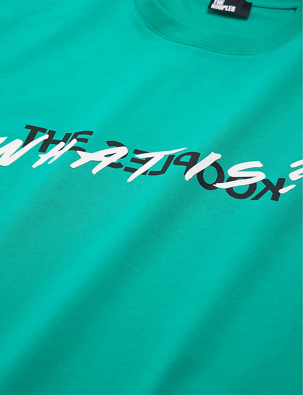 - Crewneck, short cuffed sleeves, graphic slogan-print at front and back, straight hem