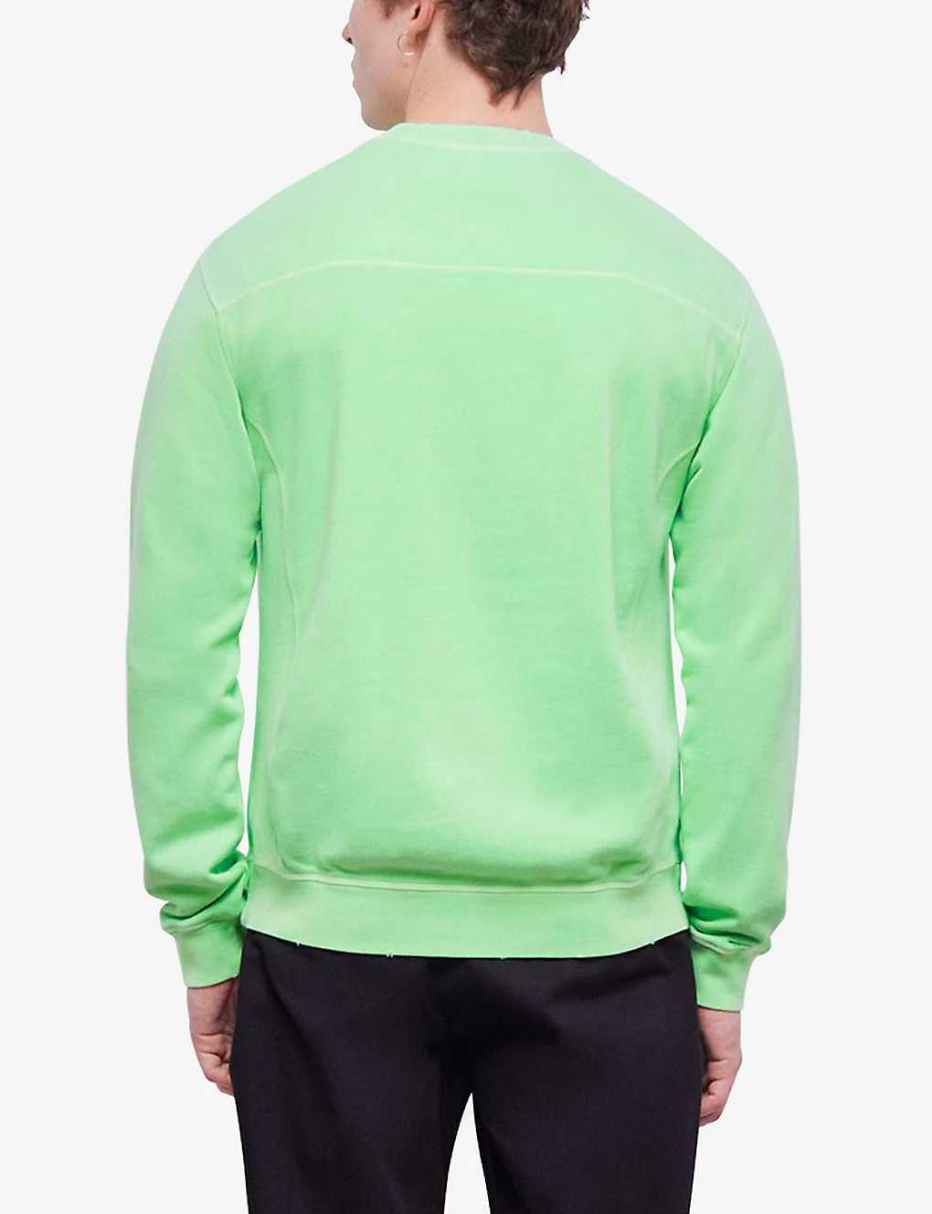 - Regular-fit, crewneck, long sleeves, printed logo at chest, all-over overlock-stitch detailing, ribbed trims