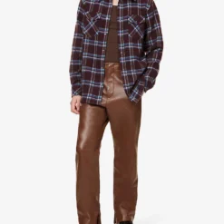 - Regular-fit, collar, long sleeves, buttoned cuffs, two buttoned flap pockets at front, all-over tartan check pattern and brushed texture, curved hem
