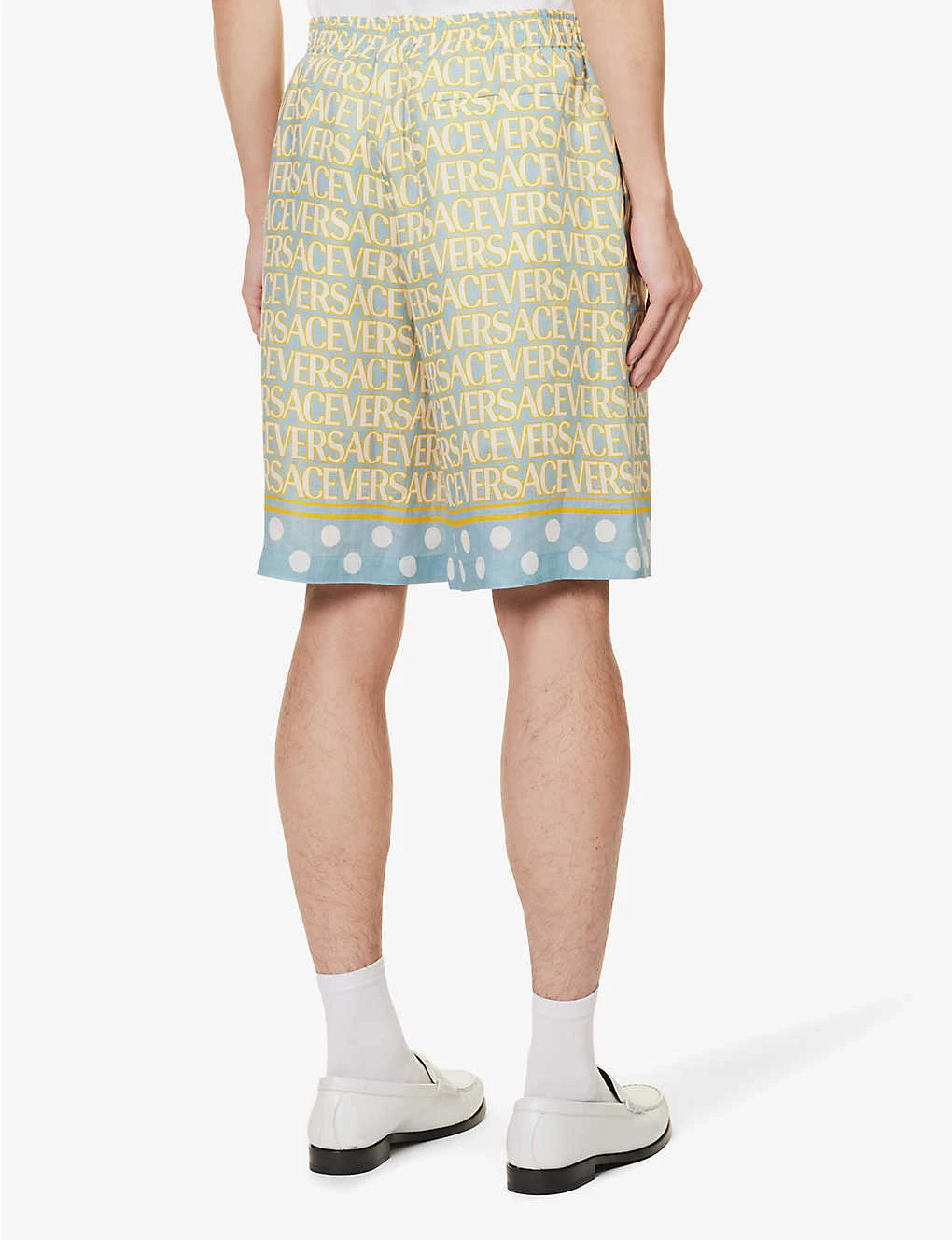 Be the first to review “Versace Logo-print Polka Dot-hem Linen Shorts” Cancel reply