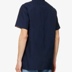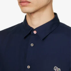 - Regular-fit, short sleeves, pearlescent buttons, embroidered Zebra appliqué at chest, notched hem